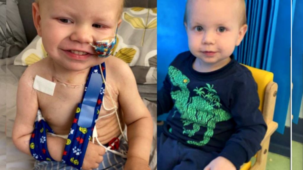 A mãe Leanne Waite e seu marido, Chris, estavam vestindo seu filho de três anos quando notaram que seu braço esquerdo estava com muita dor.