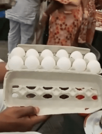 No entanto, em meio ao aumento do custo dos alimentos no país, os organizadores de uma festa decidiram compartilhar pães e caixas de ovos como uma espécie de alívio para os participantes.