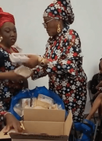 Como parte de uma típica celebração nigeriana, é comum que o anfitrião dê presentes aos convidados como forma de expressar gratidão àqueles que compareceram ao evento.