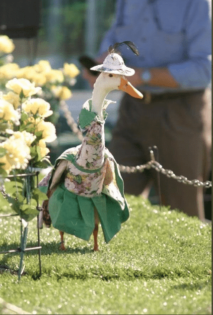 Cartolas, anquinhas, vestidos de espartilho e pequenos chapéus femininos são vistas comuns na passarela dos patos. Os visitantes não se cansam dos animais adoráveis e, no final, votam em seus favoritos.