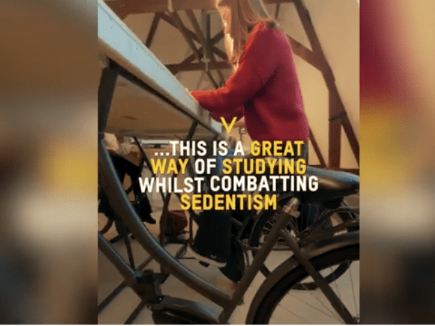 Uma biblioteca, pra lá de inovadora, na Holanda, introduziu bicicletas em suas mesas de estudo e pesquisa. Permitindo assim, que os usuários se exercitem e carreguem seus dispositivos enquanto estudam.