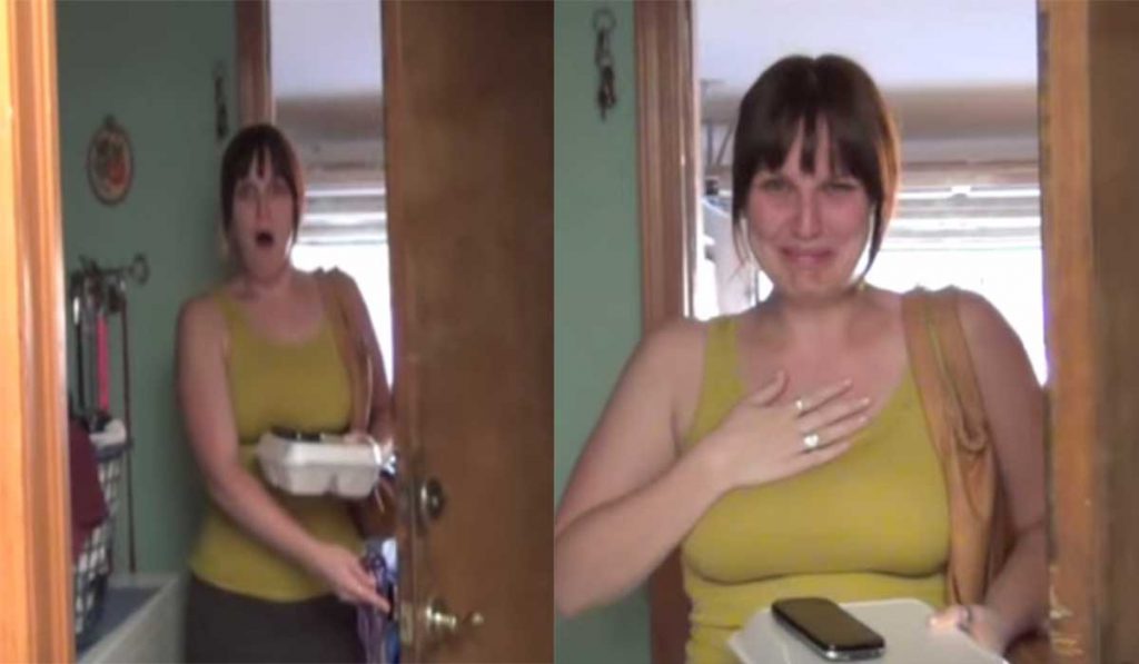 Quando ela chega em casa e se depara com o filhotinho, não consegue controlar o choro. Debulha-se em lágrimas ao ver o pequeno dentro de uma caixa de papelão. Sua reação não tem preço!