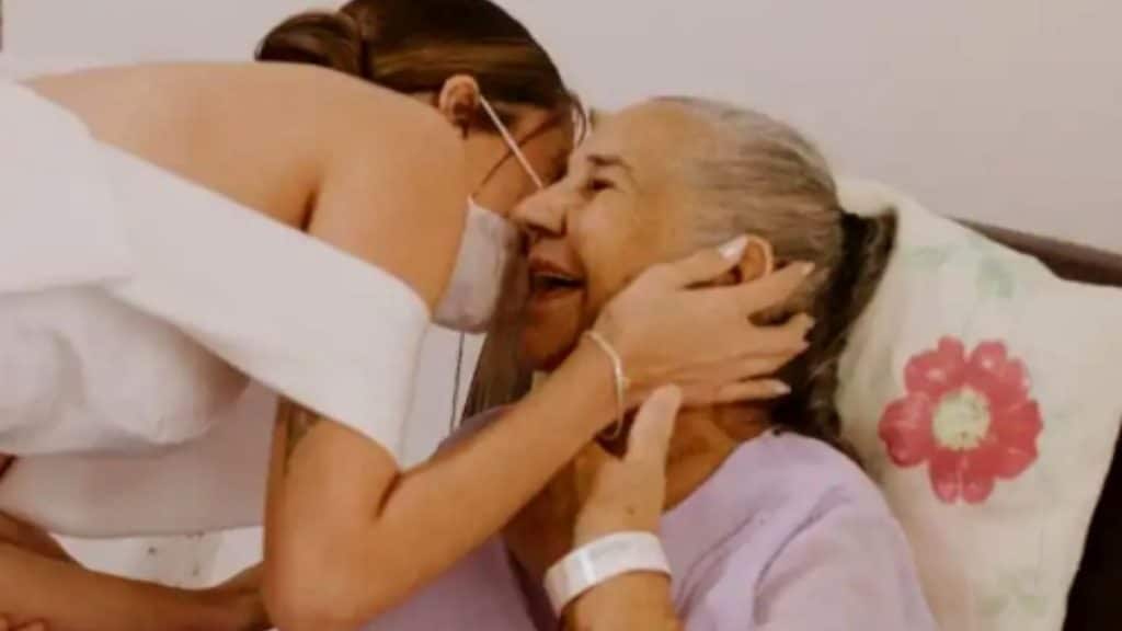 Então, Bruna, vestida de branco, percorreu os corredores da unidade em que a avó está internada, e, em meios a pedidos de ‘calma, vó’, pede a benção.
