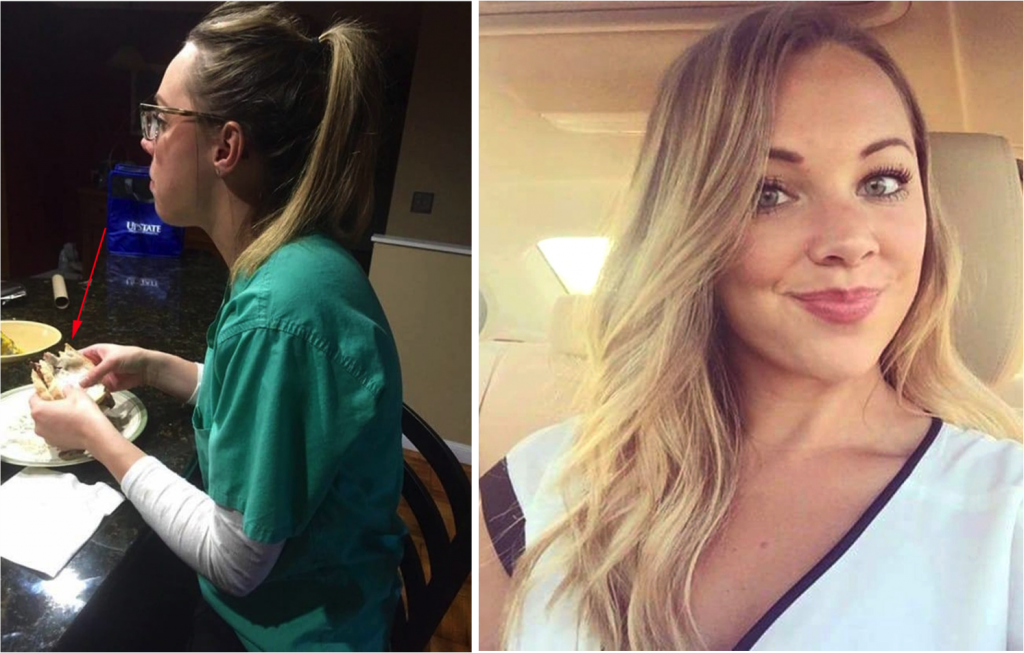 “Esta é minha esposa Jessica jantando após 14 horas de trabalho. Quando ela chega do trabalho, só tem tempo para jantar, ir direto pra cama e se preparar para mais um dia de trabalho. Ela acorda cedo e não gosta de ser perturbada de manhã, eu respeito isso. Ela toma banho, amarra o cabelo, pega seu lanche, dá comida ao cachorro eme dá um beijo antes de sair.