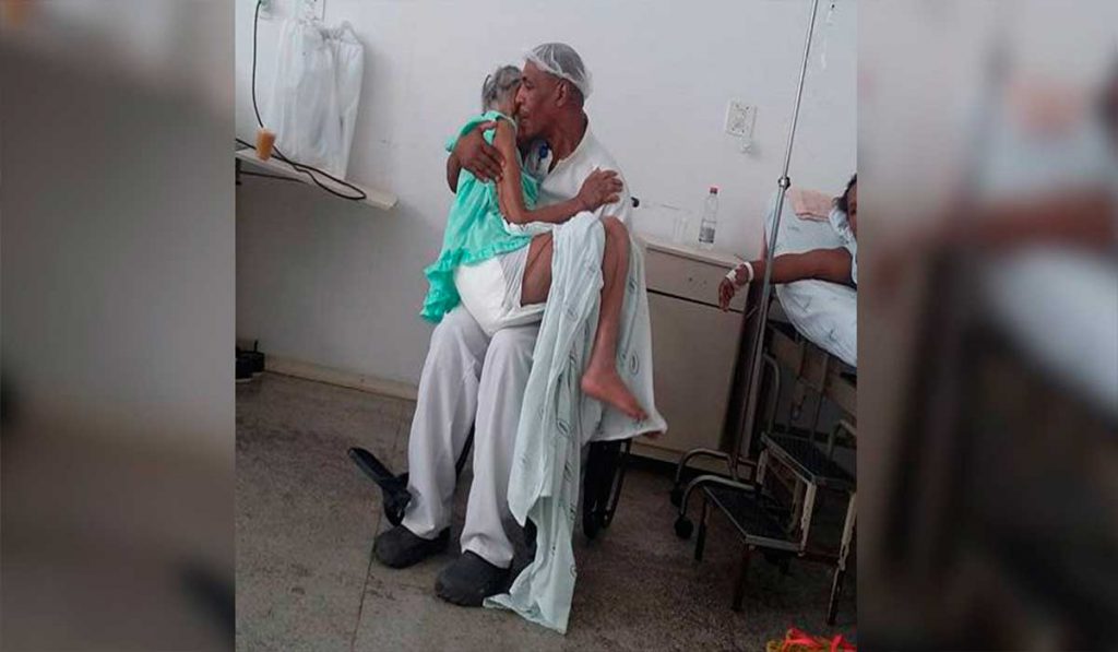 O maqueiro do hospital não pensou duas vezes ao entrar no leito e vê-la naquele estado: segurou-a no colo e cantou no pé do ouvido uma canção para que ela se acalmasse enquanto o colchão especial era providenciado.