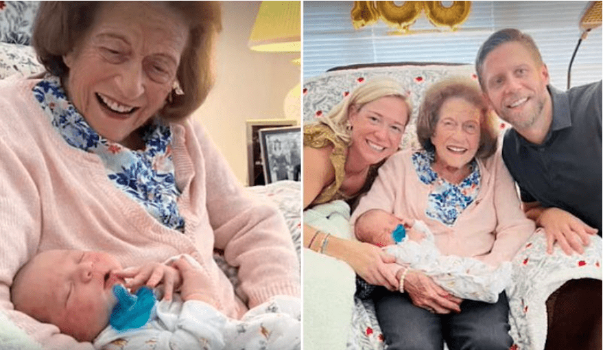 “Eu estou apenas pensando em como sou sortuda”, disse a bisa enquanto segurava o bebê no colo.