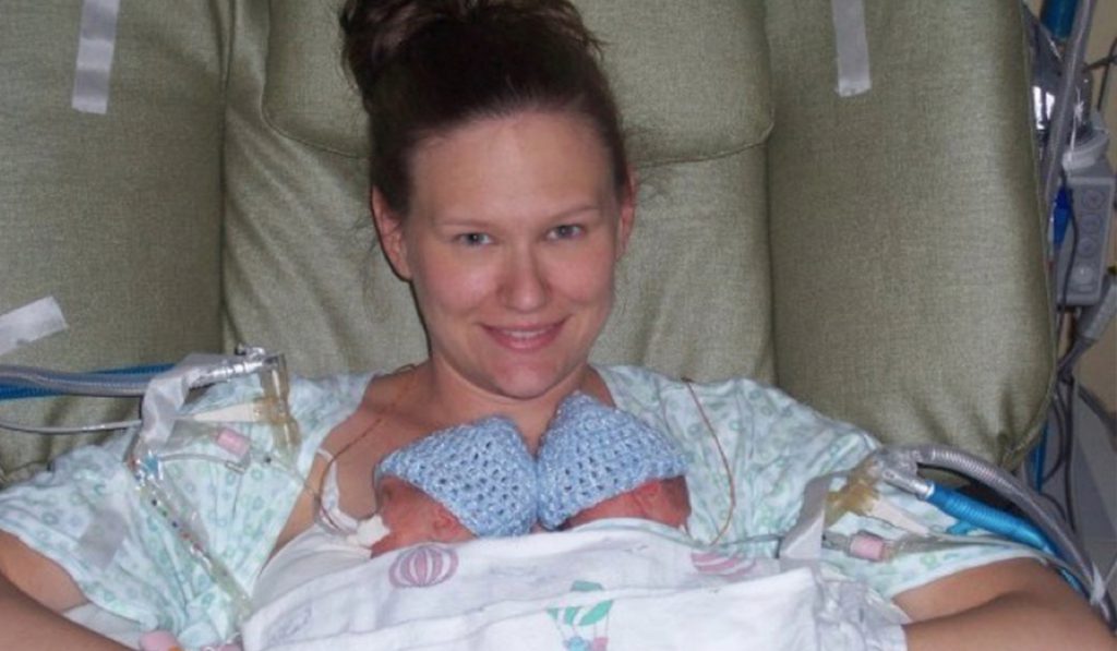 “Você está brincando comigo?” Essas foram as primeiras palavras que saíram da boca de Andrea em 2008, quando o técnico de ultra-som informou que ela teria gêmeos. Contudo, ainda que muito feliz, ela teve algumas complicações na gravidez, a principal delas foi uma síndrome chamada de HELLP, que afeta pelo menos 1% de todas as gestações e fez com que Andrea fosse levada às pressas ao hospital com perigo de perder seu fígado que estava se rompendo. Quando ela passou por uma cirurgia de emergência, a fim de salvar seu fígado e sua vida, os gêmeos acabaram nascendo prematuramente com apenas 28 semanas de gestação. Hayden e Logan, como foram batizados, tiveram que passar 71 dias na UTI Neonatal.