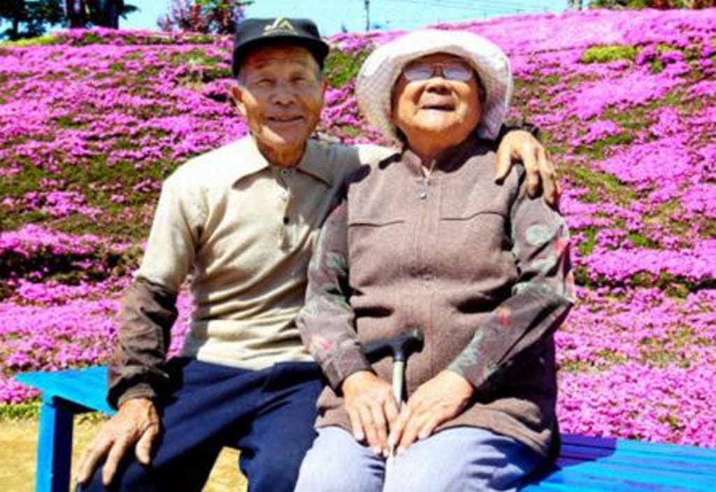 Toshiyuki, de 86 anos, iniciou o plantio de flores há 20 anos. Fez isso para dedicar todo o seu esforço a sua esposa, Yasuko, 76 anos. O mais curioso dessa história é que Yasuko recebe os turistas com um largo sorriso no rosto e se gaba de contar que o jardim foi feito em sua homenagem, mas ela mesma nunca conseguiu vê-lo com os próprios olhos.