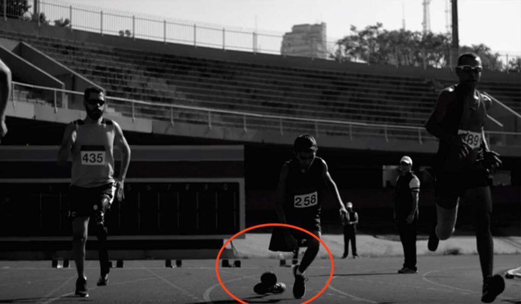 Ele perdeu a perna durante a competição. O que ele vê no final, na pista de corrida, é ainda mais inesperado