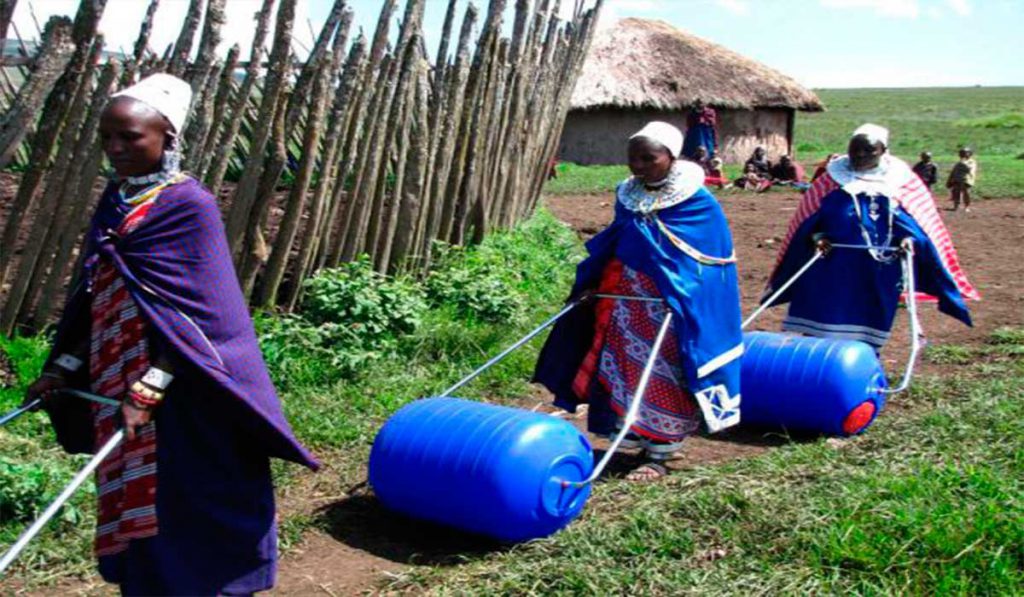 A invenção já está presente em 20 países e permite armazenar cerca de 90 litros, volume que jamais seria carregado em um balde na cabeça.