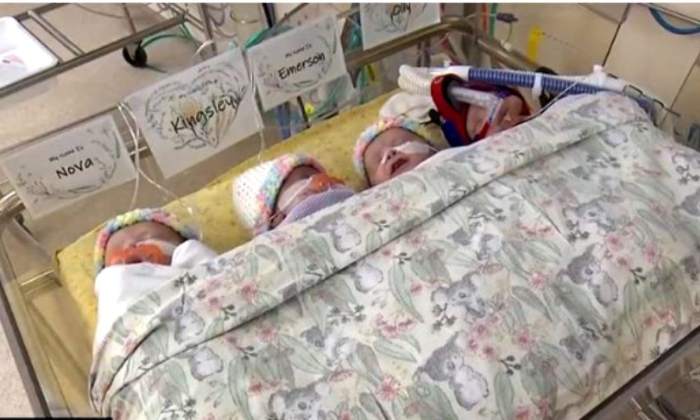 Mas o casal de Queensland Breeanna e Kwenton conseguiu muito mais do que esperava quando – em uma chance em 700.000 – eles naturalmente conceberam quatro.