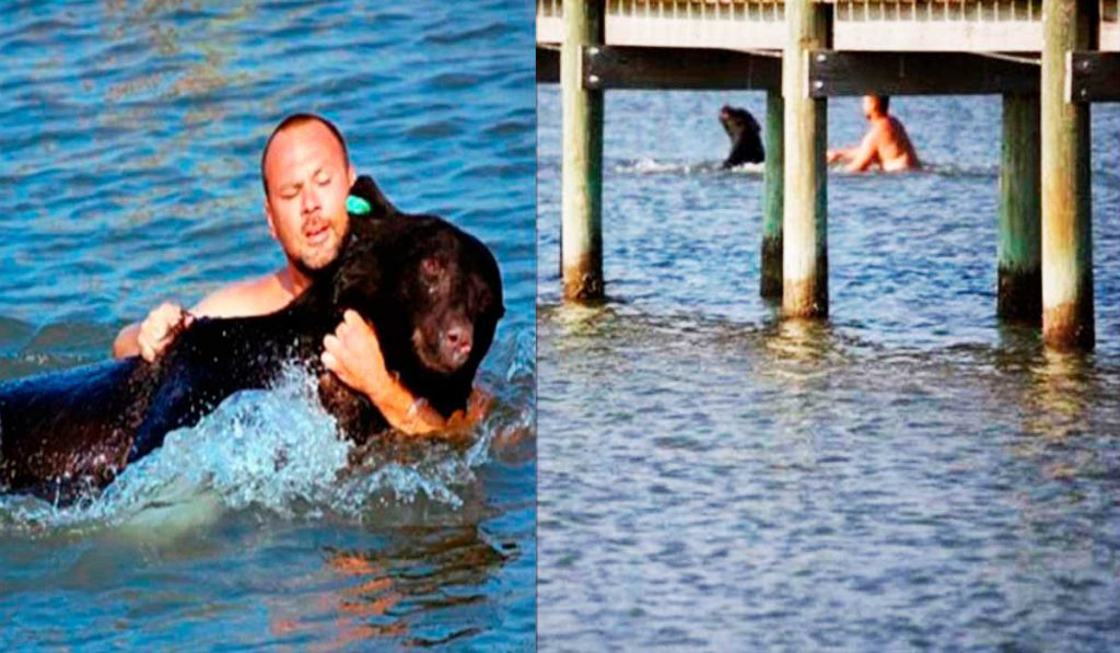 Em ato heroico, homem arrisca a vida para salvar um urso de 170 quilos