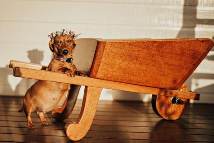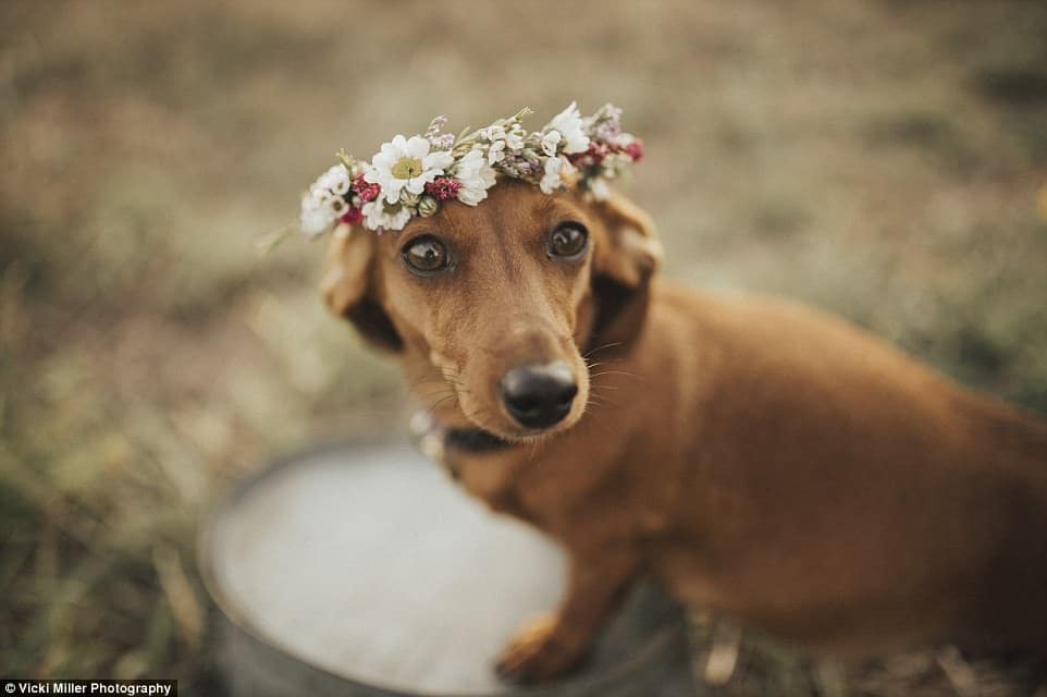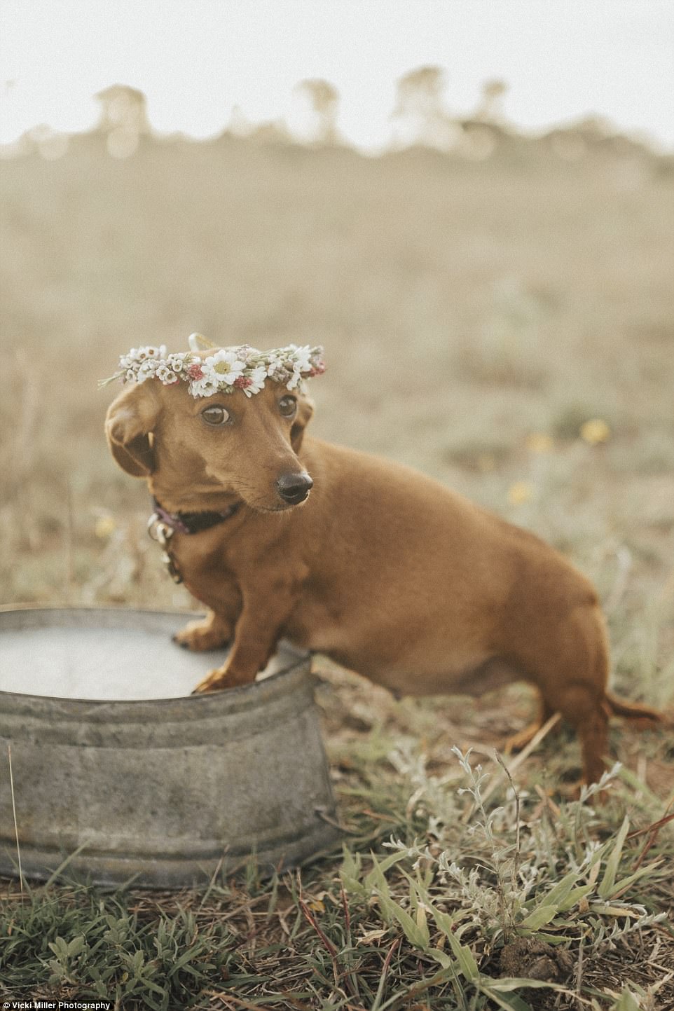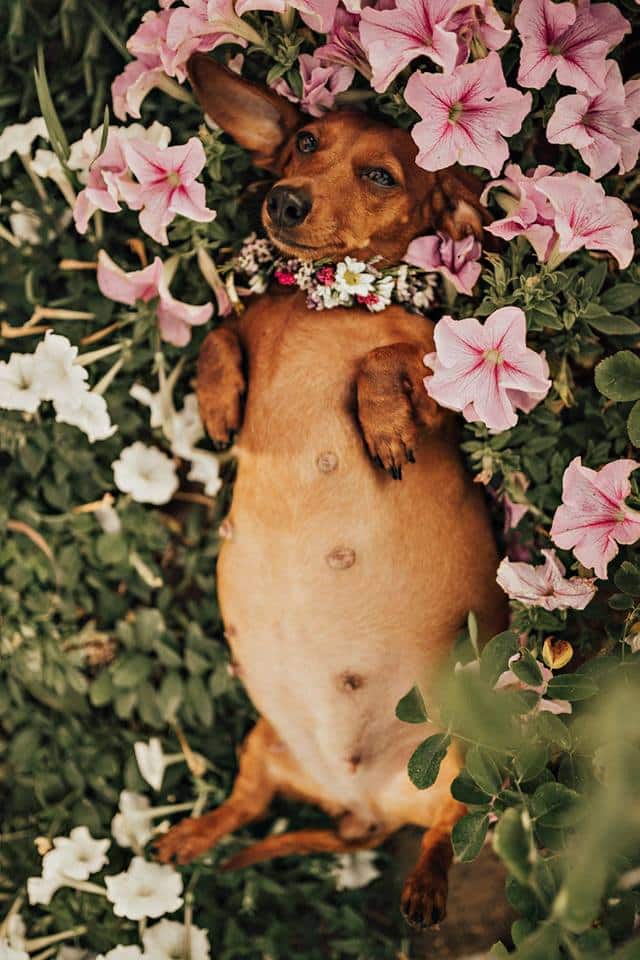 Grávida de cinco filhotinhos, a dachshund posou aos cliques da fotógrafa australiana Vicki Miller, que também é tutora da futura mamãe.