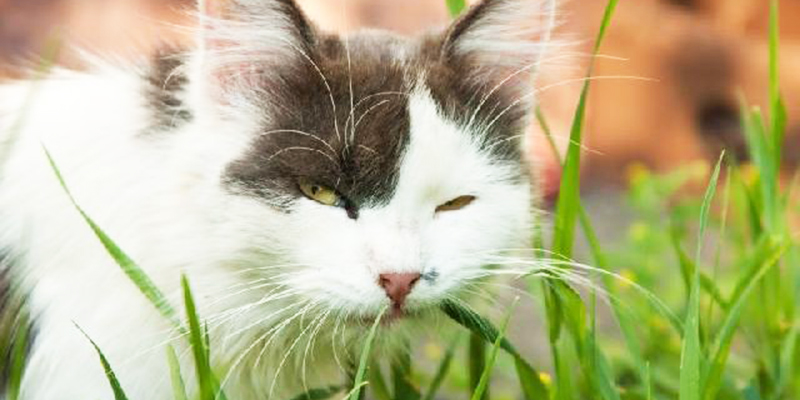Quando o gato se lambe para se limpar, ele costuma engolir uma boa quantidade de pelos, o que faz com que se forme uma bola de pelos no estômago do animal, o que é muito incômodo e precisa ser eliminado através do vômito. É aí que a grama, especialmente a erva-de-gato, entram: induzindo ao vômito e consequentemente à limpeza e bem-estar.