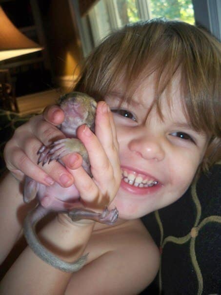 Ela estava quase pronta para ser liberada de volta à vida selvagem quando um dia, ela deu à luz três bebês minúsculos, forçando sua família humana a cuidar da pequena família de esquilo até que os bebês tenham idade suficiente para serem libertados. “Foi realmente surpreendente ver o bebê que criei criar seus próprios bebês”, disse Brantley.