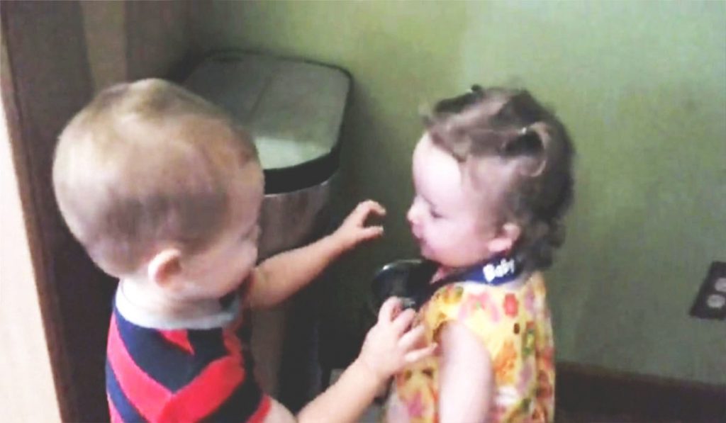 Mas o garotinho do vídeo não quis nem saber e, incentivado pelos pais, resolve dar um abraço na coleguinha. Assistir ao pequeno num gesto tão singelo e carinho tão tem preço. É uma experiência única.