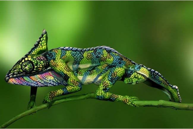 Este camaleão é na verdade duas mulheres com os corpos pintados