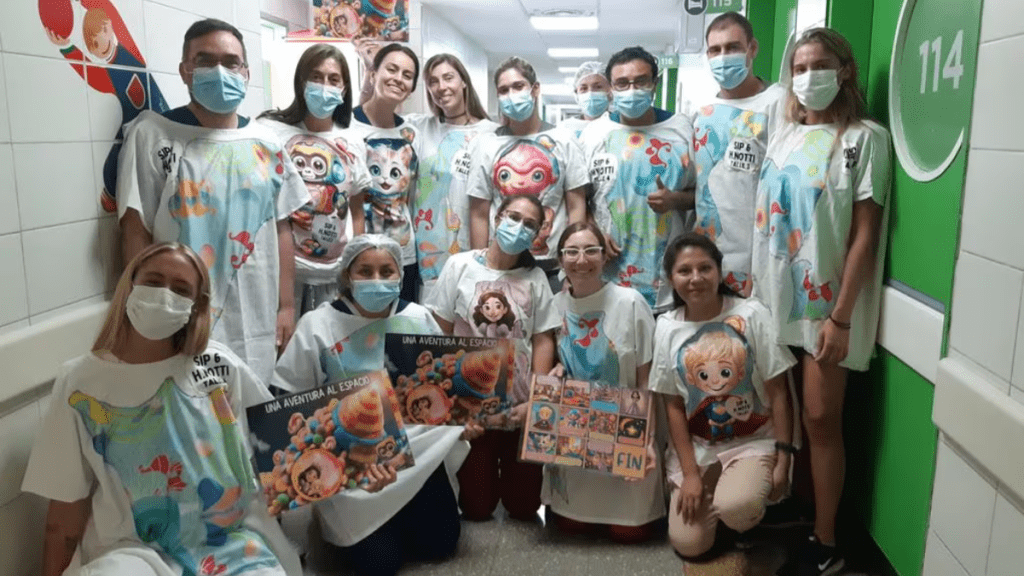 As estudantes deram espaço a uma nova roupa, colorida e cheia de desenhos infantis. E para deixar o momento ainda melhor, elas aproveitavam para compartilhar com os pacientes a história que motivou o projeto. É muito mágico!
