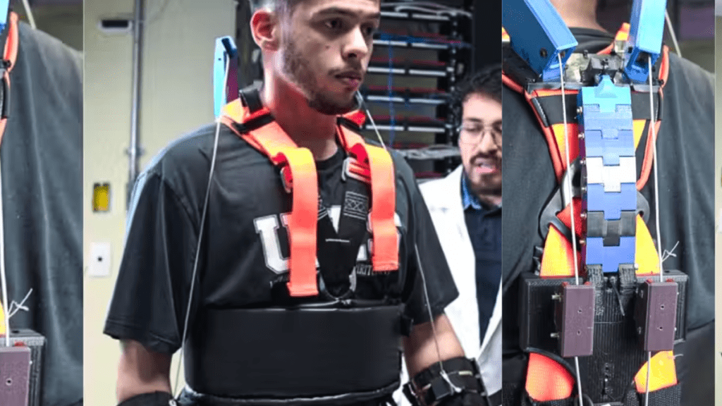 O aparelho oferece mais mobilidade, previne de lesões e também evita movimentos repetitivos. O paciente vai poder vesti-lo como uma armadura, o que vai fornecer apoio e força.