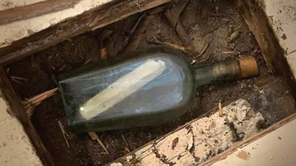 Família encontra mensagem numa garrafa de 135 anos, durante reforma.