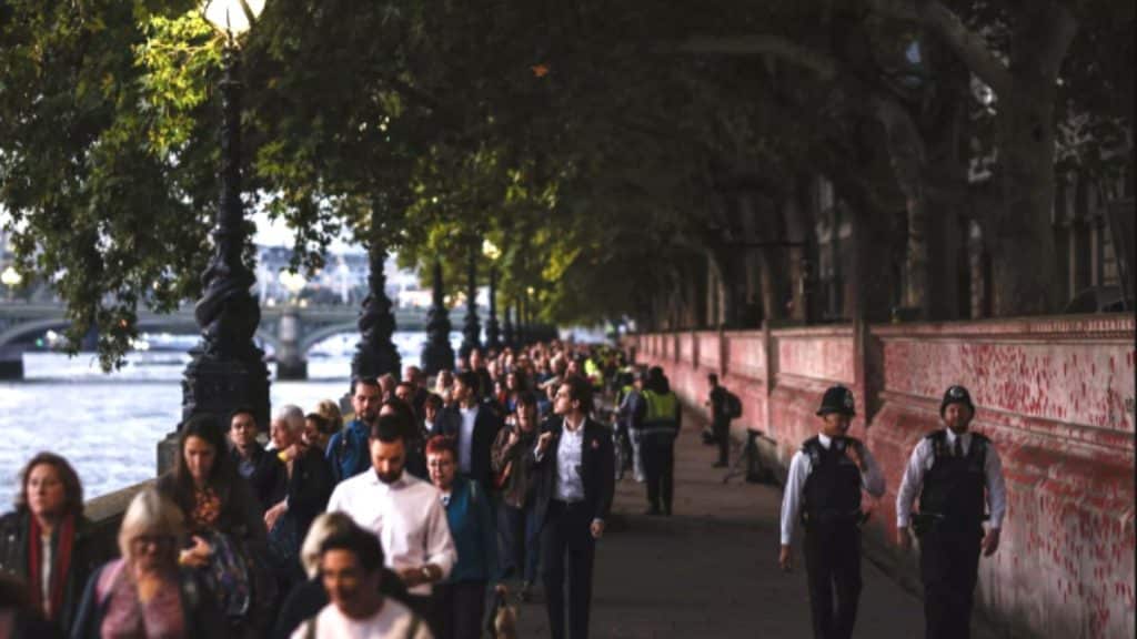 Uma fila de dez quilômetros se formou em frente ao local onde o corpo da rainha está sendo velado.