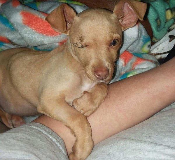 Para não piorar a saúde do chihuahua, o olho teve de ser removido através de uma cirurgia, esta que os médicos não sabiam se o filhote iria aguentar. “Por sorte, ele sobreviveu e tudo foi melhor do que o esperado”, contou Kristen Smith, veterinária que participou do procedimento.