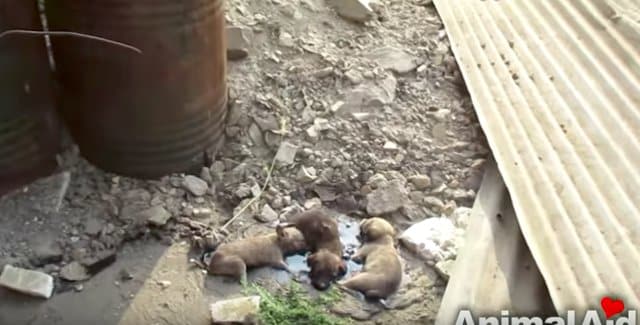 Os cachorrinhos estavam de vida nova! Felicidade em se livrar de toda aquela sujeira e ainda mais felizes em encontrar sua mãe.