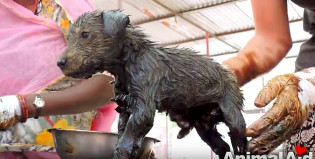 Cães e piche: algo que não dá certo. Já falamos aqui sobre cachorro que ficaram presos na substância, porém dessa vez o caso aconteceu com filhotes.