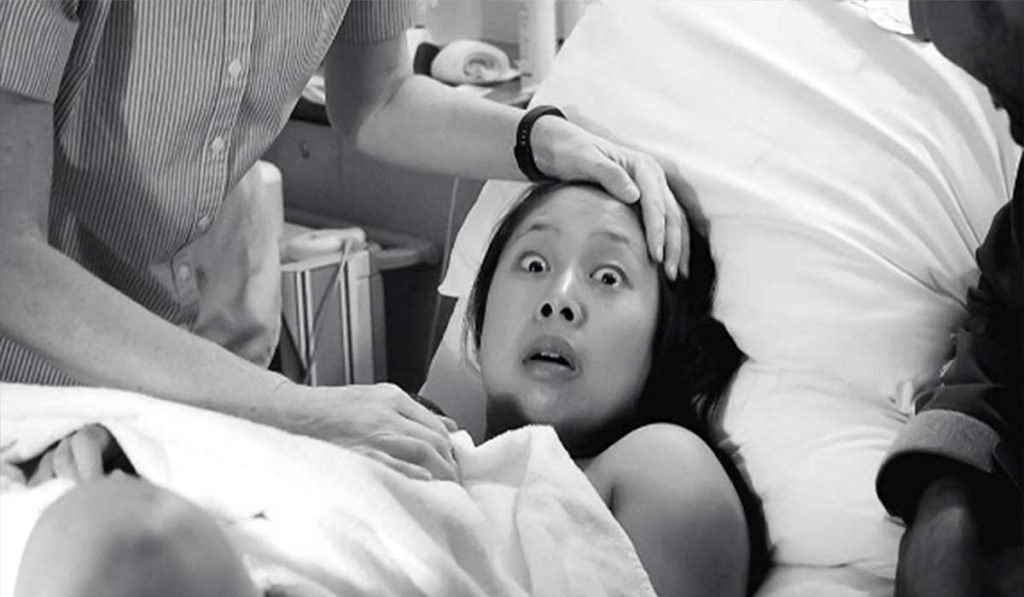 Koto Nakamura foi flagrada literalmente de queixo caído durante o nascimento do seu primeiro filho.