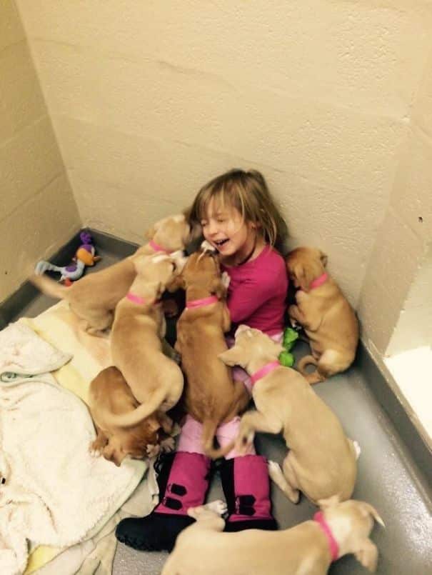 8. “A minha filha é voluntária no nosso abrigo local, ajudando a alimentar os cachorros. Ela foi dominada pela fofura!”