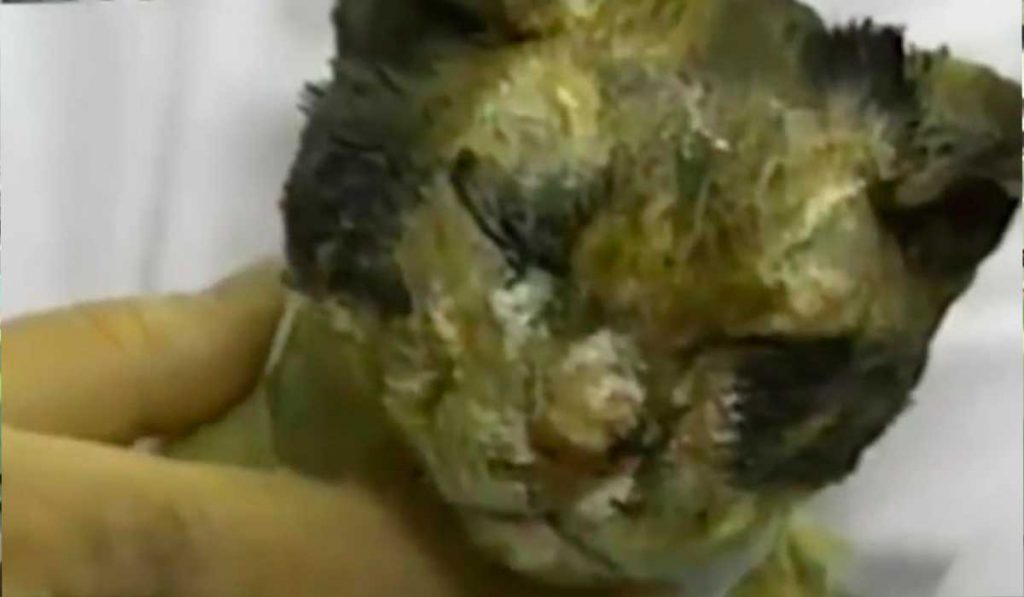 Quando os bombeiros chegaram, presenciaram algo que cortou seus corações: Scarlett, toda queimada, estava do lado de fora da casa cercada por todos os seus filhotes. A gata havia entrado 5 vezes no local para tirar cada um dos seus filhotinhos de lá.