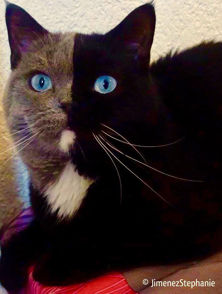 Mas não foi essa diferença incrível que a fez se apaixonar à primeira vista pelo felino, e sim seus olhos azuis. Embora a causa exata da aparência impressionante do gato seja desconhecida, outros gatos com características semelhantes são conhecidos como quimeras.