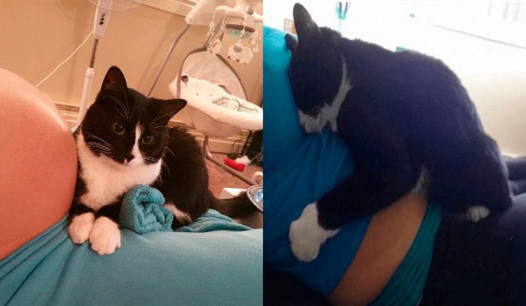 Gatinha cuidou da barriga da dona grávida por 9 meses. Quando o bebê nasceu, ninguém pensou que ela agiria desse modo