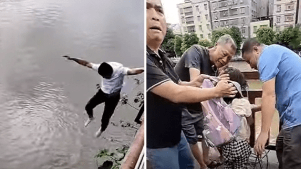 O incidente ocorreu na cidade de Qingyuan, província de Guangdong, China, onde uma jovem se viu numa situação perigosa. Ela aparentemente havia escorregado no rio que corria rápido e estava lutando para se manter à tona.