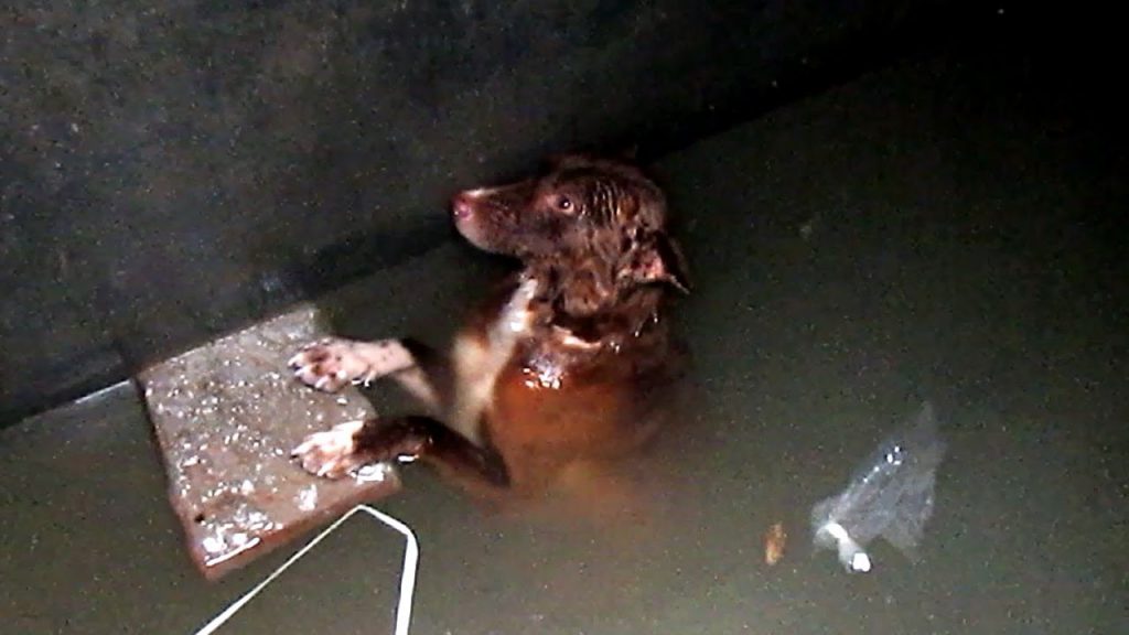 Heróis fazem resgate impressionante a cachorro que passou a noite sozinho após cair em tanque d’água