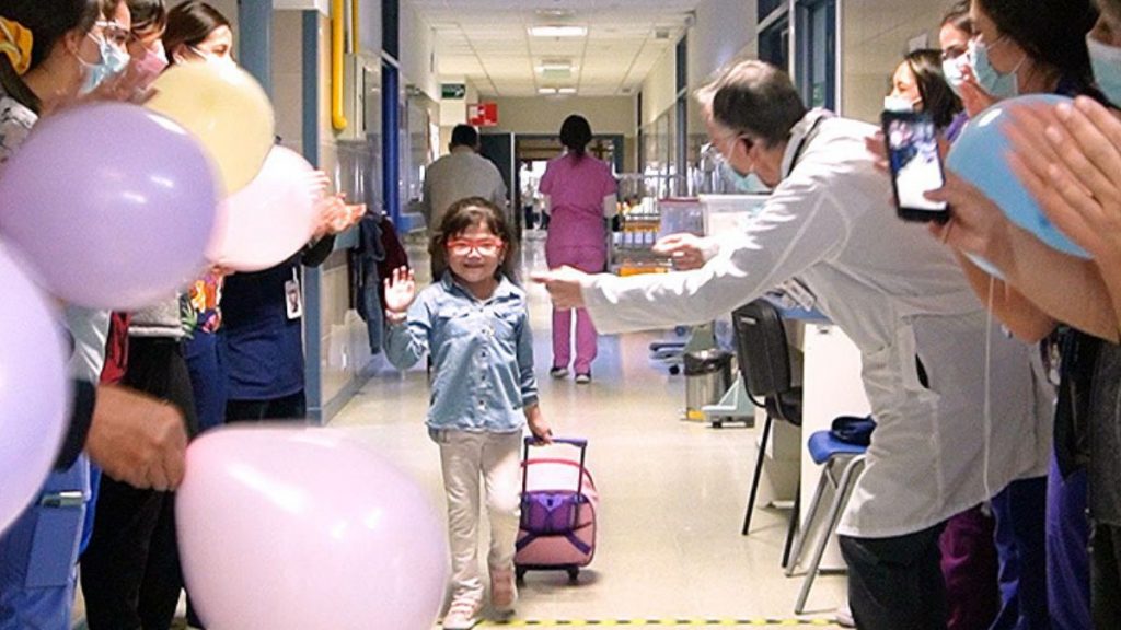Ela se despediu dos funcionários do Hospital de Los Angeles em meio a balões, aplausos e felicitações.