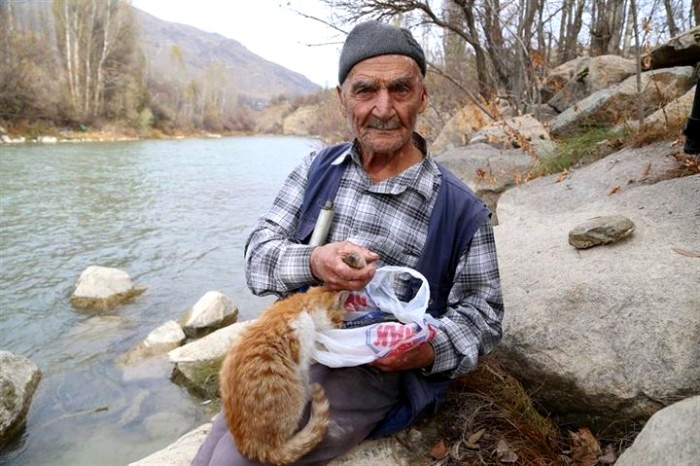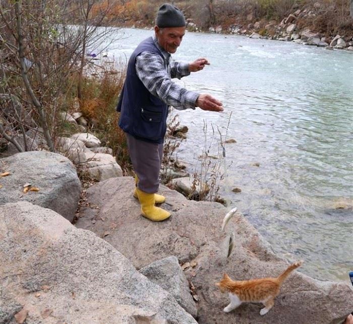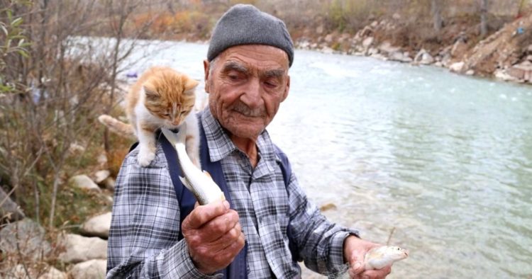 Foi exatamente isso que fez o mundo conhecer o senhor Ali Sayin, de 78 anos, que vive na província de Ispir de Erzurum, na Turquia. Há 21 anos ele se aposentou e, desde então, sai de casa todas as manhãs e caminha 1 km até o rio Çoruh, onde pesca comida de seus animais.