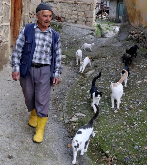“Saber que meus gatos têm uma barriga cheia, é minha alegria”, disse. A paixão de Ali por gatos começou quando teve um gato chamado “Pamuk”, depois disso teve outros gatinhos e seu amor por felinos aumentou. Desde então, ele os ajuda, até que finalmente após sua aposentadoria, pode finalmente dedicar sua vida a eles.