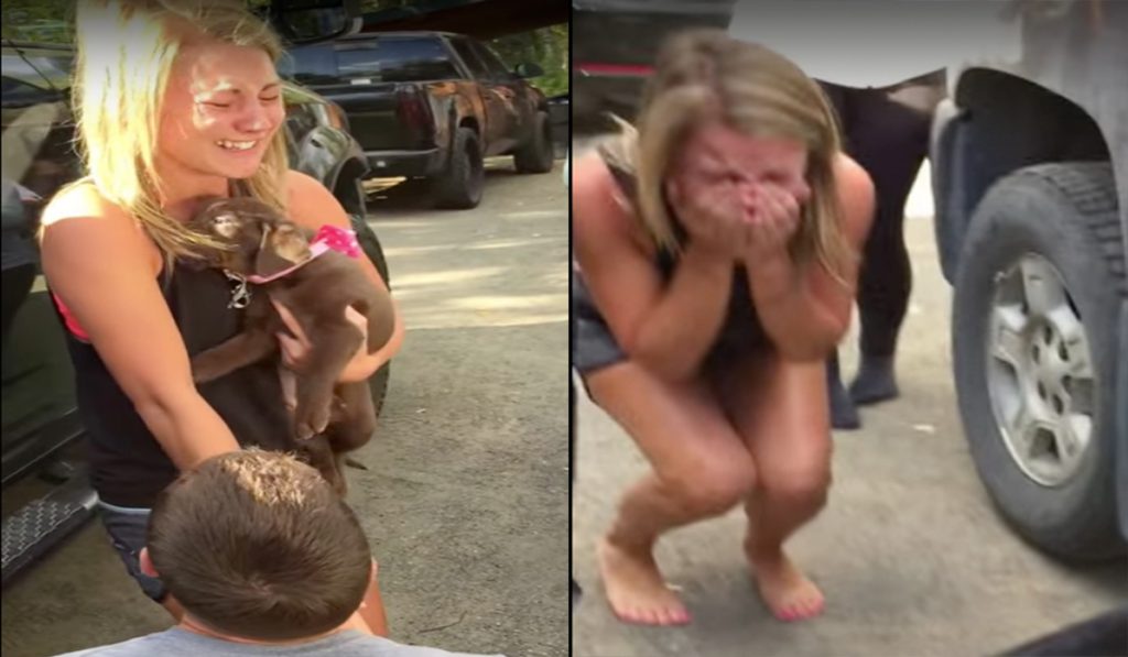 Shelby Tucker, foi surpreendida por seu namorado, Shane Moffis, que lhe deu uma cachorrinha filhote. Na coleira estava um anel de noivado e a frase que quase todo mundo quer ouvir: “Quer casar comigo?”