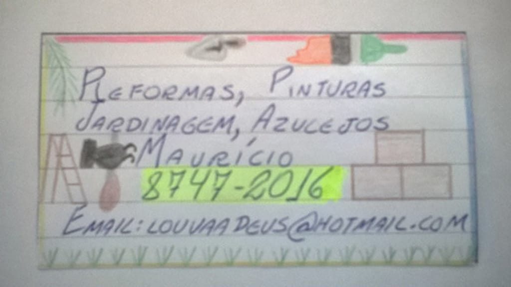 Assim, a ideia de Maurício surgiu e ele começou a trabalhar com algo que ele nunca imaginou: reformas, pintura, jardinagem e alguns outros serviços. Mas, infelizmente, algo pareceu atrapalhar tudo mais uma vez. Pela grande falta de dinheiro, não havia como confeccionar cartões de visita. Parecia que tudo estava perdido de novo.