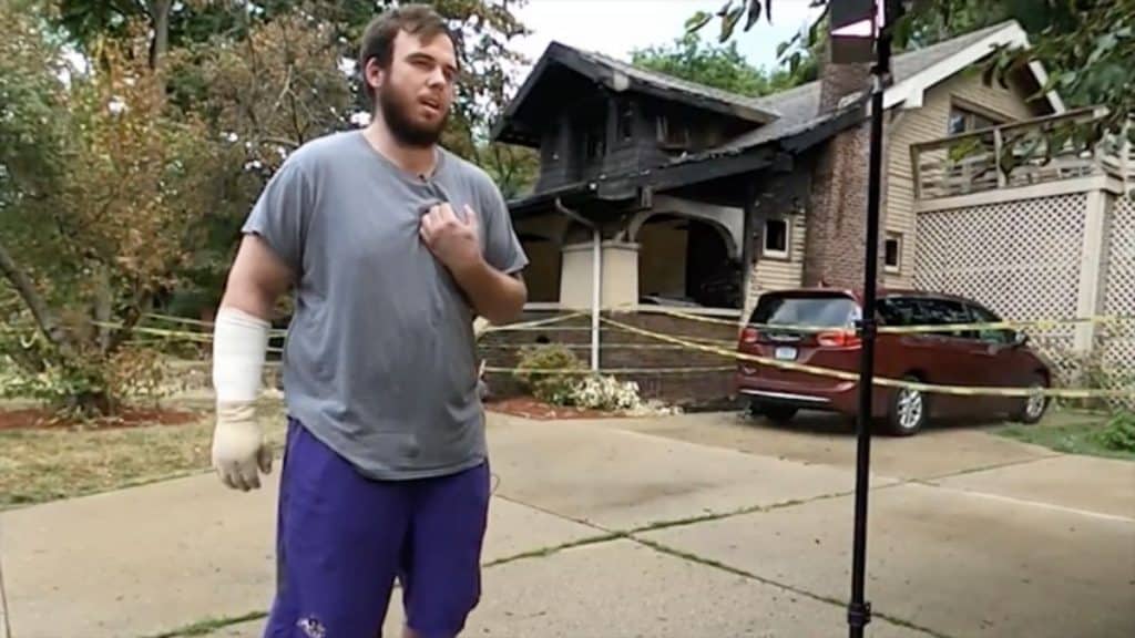 “Eu vi o fogo na varanda, então pisei no freio, entrei na garagem e corri para dentro da casa pelos fundos. Eu estava gritando ‘Tem alguém aí?”.