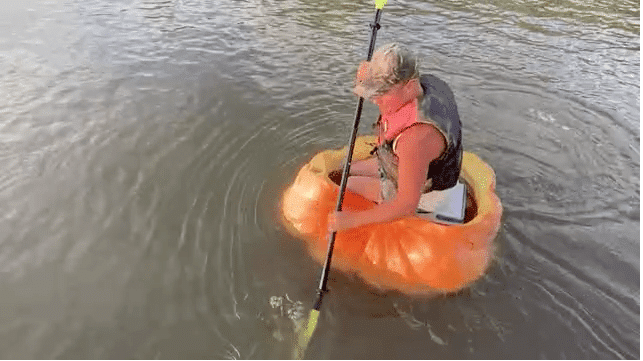 O produtor e recordista quis comemorar seu aniversário de 60 anos descendo pelo rio Missouri em uma abóbora gigante.