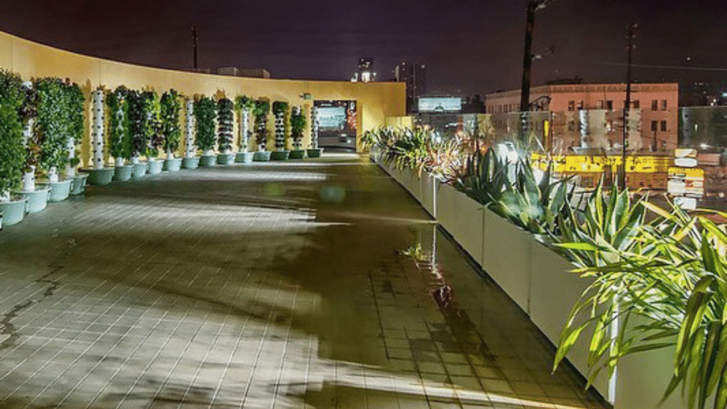 A fazenda aeropônica vertical Tower Garden® permite que uma enorme quantidade de produtos seja cultivada em um espaço pequeno, – enquanto ainda oferece espaço para um santuário pacífico e curativo para os inquilinos do edifício no meio de um ambiente metropolitano movimentado.