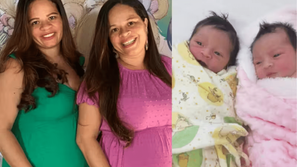 Keilla e Kelly de Sousa Martins, tiveram Isaque e Laís no Hospital Regional de Ceilândia (HRC), Distrito Federal. As duas engravidaram ao mesmo tempo, com apenas uma semana de diferença.