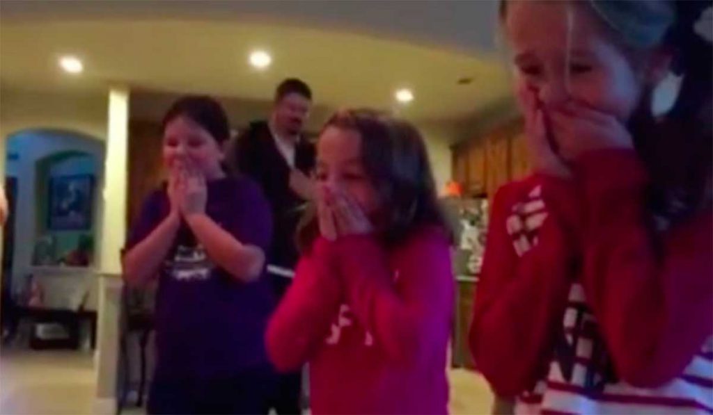 A reação das filhas ao ver o pequeno é impagável- e emocionante! Assista: