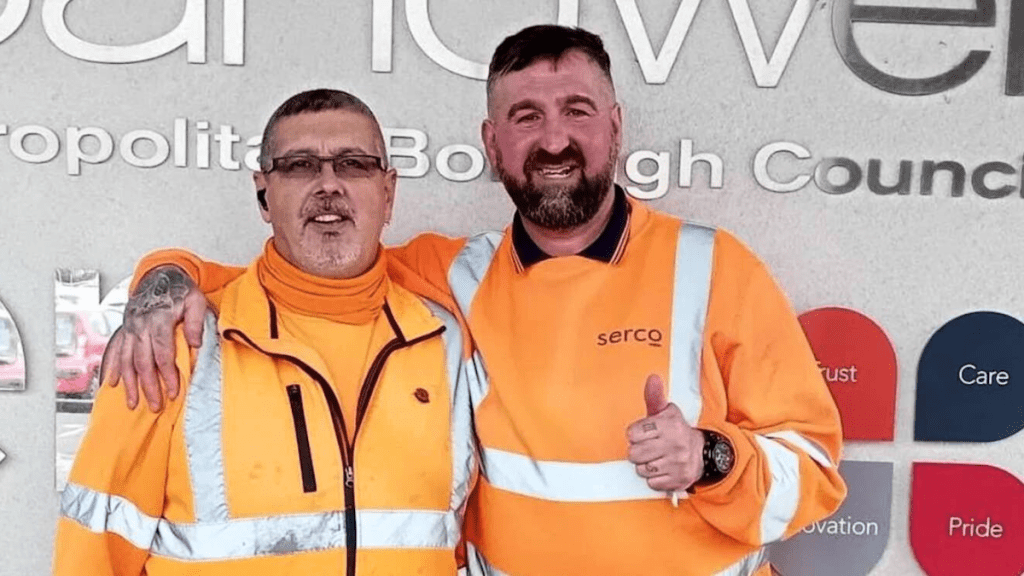Steve Whitehouse e Kevin Marriott trabalham para a coleta de lixo da Serco, e foi Whitehouse quem primeiro entrou em ação.