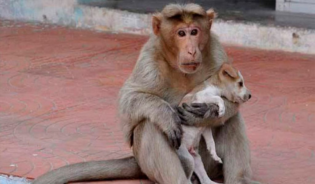 Um filhotinho de cachorro estava desabrigado na Índia e precisava de alguém que cuidasse dele urgentemente. Ainda que alguns dessem comida e até um pouco de atenção para o cachorrinho, não era suficiente. Ele iria morrer nas ruas. E foi então que o improvável aconteceu, só que de um modo totalmente fora do comum. Um macaco Rhesus, observava a situação e tomou uma decisão forte, ele iria adotar o filhote!