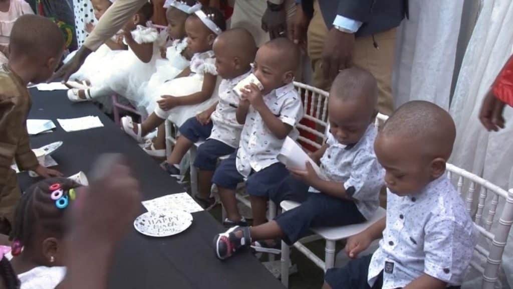 Uma incrível comemoração de aniversário aconteceu na nação africana de Mali, quando nove bebês completaram dois anos no último fim de semana.