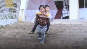 Quando seus pais começaram a discutir sobre colocar o menino na escola, ou não, Zhou se propôs à ajudar no que fosse necessário. “Eu serei as pernas dele”, disse a menina.