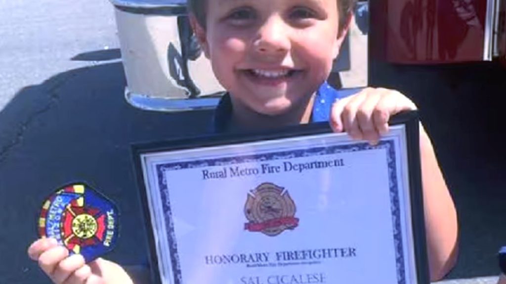 Menino de 5 anos salva mãe e é homenageado pelos bombeiros.